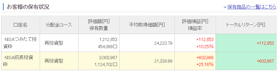 まだ長期投資始まったばかりですが、ちょっと運用成績良すぎますね。運用プラスであるのはうれしいのですが、長期で8%でくらいの複利運用されればよしという気持ちでやっています。